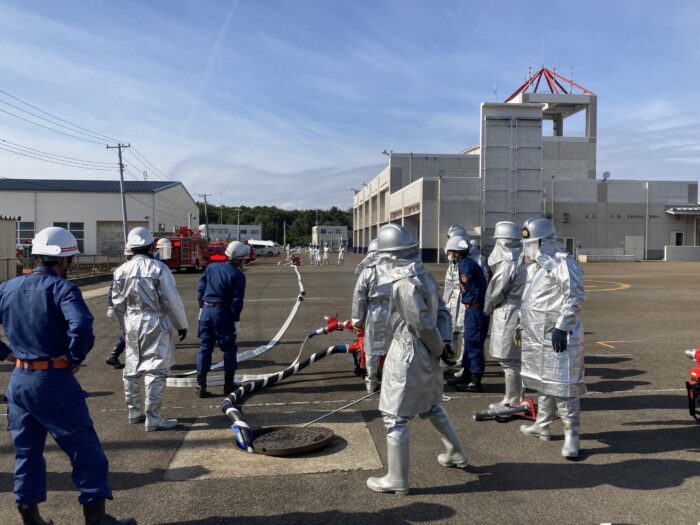 消防団向けに消防ポンプ中継放水訓練の講師として招かれました。