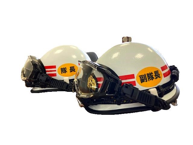 新デザインの消防団幹部活動ヘルメット。